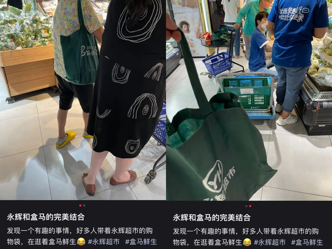“好多人帶著永輝超市的購物袋,在逛盒馬鮮生。”