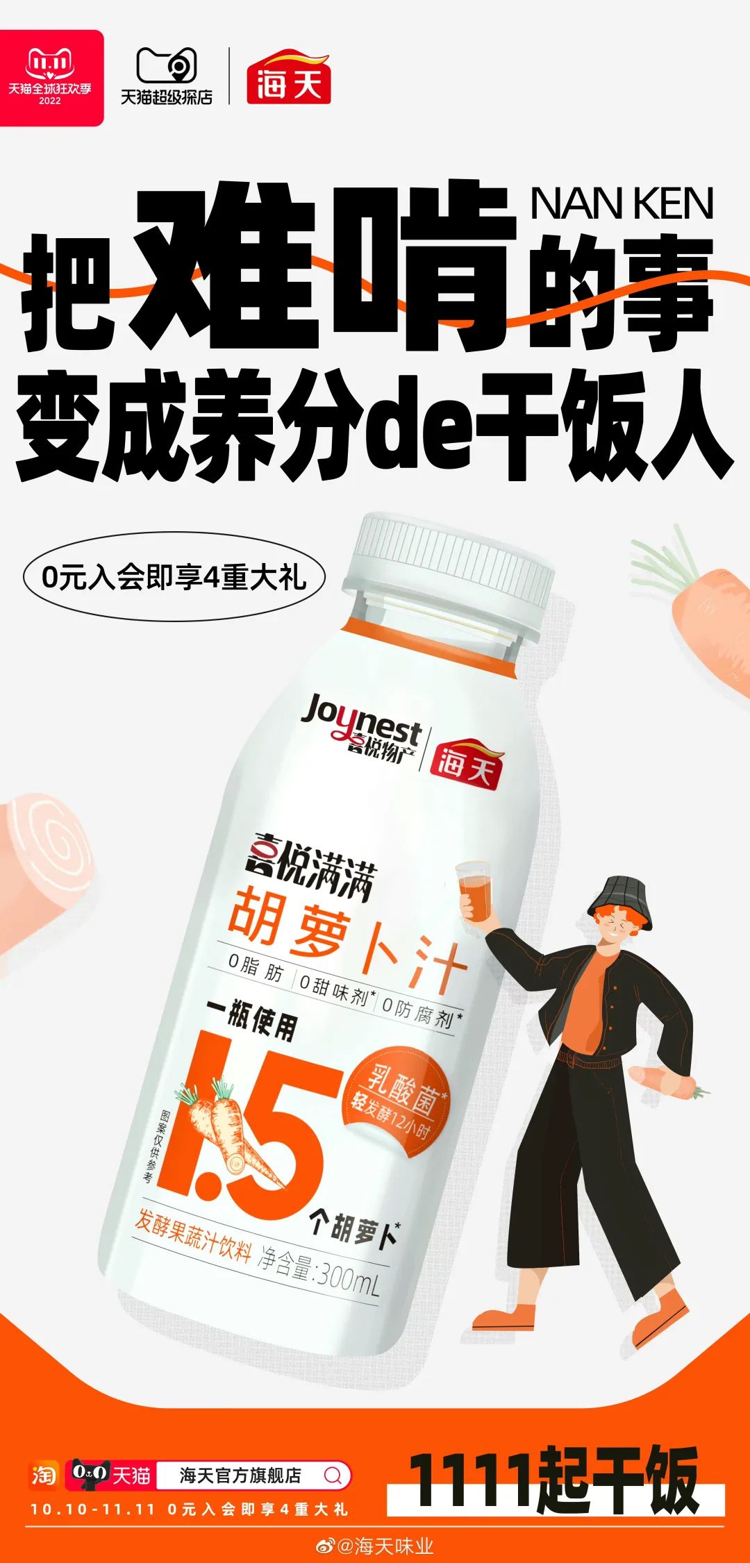 不只是旺旺,F(xiàn)oodaily發(fā)現(xiàn),去年,海天也跨界飲料市場(chǎng),推出了一款胡蘿卜發(fā)酵果蔬汁飲料新品。主打胡蘿卜輕發(fā)酵的概念,每瓶β-胡蘿卜素含量≥2400μg。