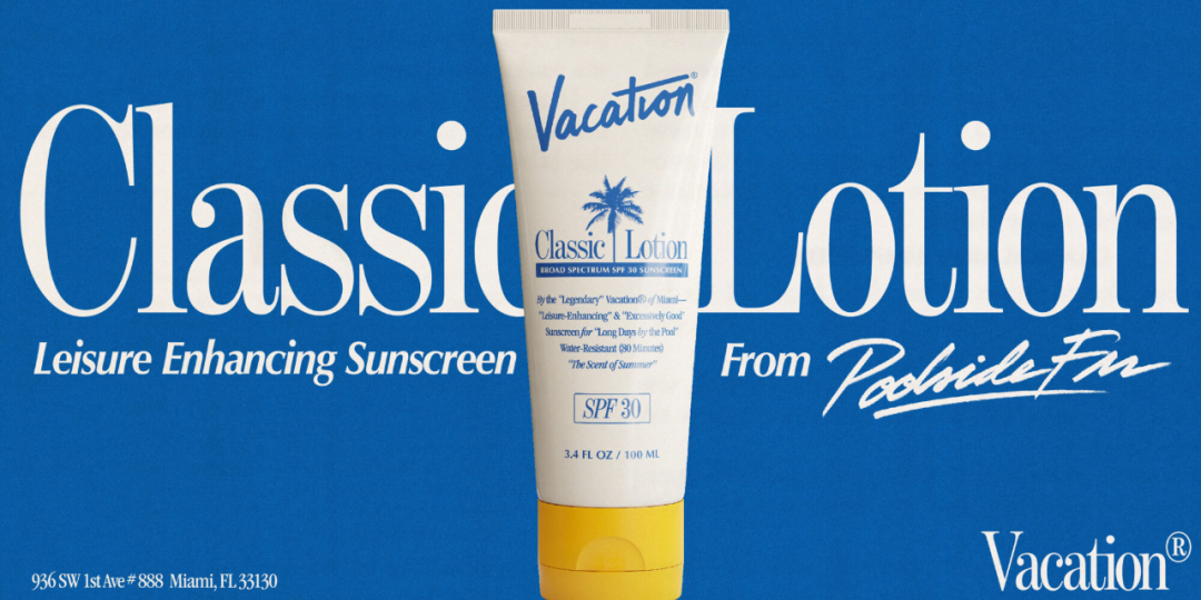 Vacation防曬霜則帶領人們踏上有趣的80年代之旅——一個由噴氣滑雪、水上有氧運動和那個年代度假人物組成的粉彩世界。Vacation從80年代的廣告中汲取靈感,以詼諧幽默的方式呈現當年的企業(yè)文化。
