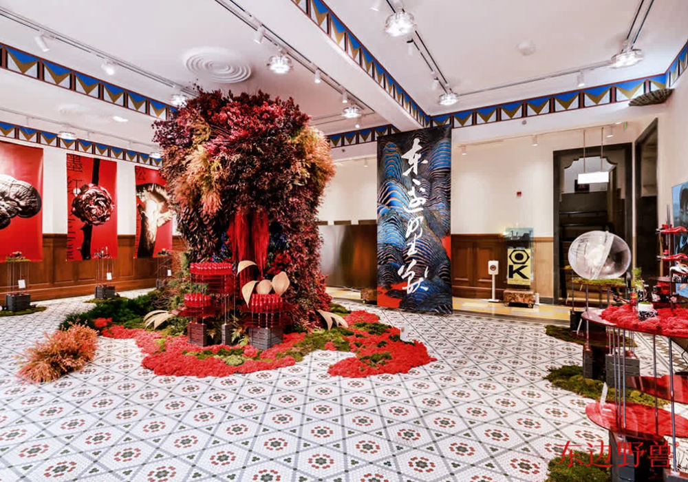 這種純美學(xué)的營銷手法是更多大品牌會采用的,因為這種正統(tǒng)高雅的展現(xiàn)方式,更能凸顯品牌自身的積淀和品味。如主打國粹藝術(shù)風(fēng)格的國潮高端護膚品東邊野獸在虎年舉辦的兩場以“偏向虎山行”為主題的線下藝術(shù)展。展覽除了展出產(chǎn)品,還攜數(shù)字藝術(shù)家高陽共同創(chuàng)作數(shù)字藝術(shù)作品。讓展覽的每一個角度,布置,道具都體現(xiàn)出東邊野獸的國潮美學(xué)。