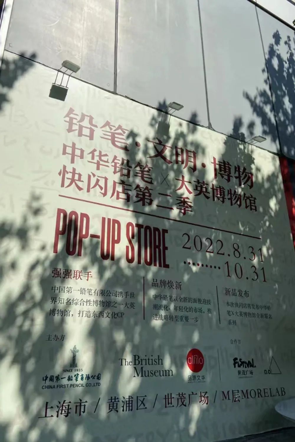 去年6月,中華鉛筆攜手大英博物館于上海黃浦世茂廣場打造“文明變鉛”首家快閃店。此次快閃店以“中鉛綠”作為主色調(diào),分別設(shè)置了埃及、希臘、文藝復(fù)興三大主題聯(lián)名區(qū),以文字、圖騰、標(biāo)志物陳列的方式向消費者講述人類文明發(fā)展過程。