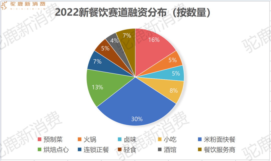 按照融資數(shù)量計(jì),快餐是最受資本青睞的品類,2022年共有23家餐飲企業(yè)獲得融資,占賽道總?cè)谫Y量的30%。