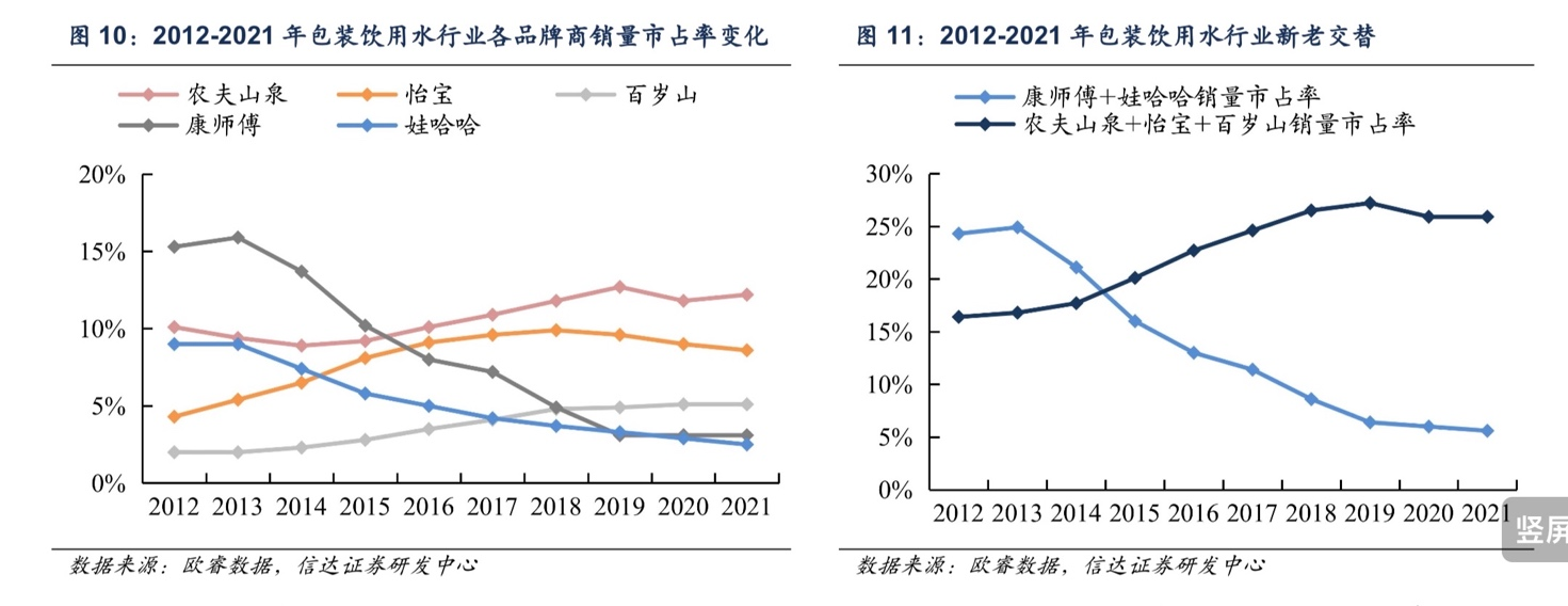 因而,在中大規(guī)格包裝飲用水的競爭似乎是對品牌占據(jù)用戶心智的進(jìn)一步考驗。自2016年農(nóng)夫山泉成為市場占有率第一的包裝飲用水之后,其在消費者心中建立起了極強的認(rèn)同。水站老板向時代周報記者表示,在兩年前上海桶裝水品牌紛紛提價之時,農(nóng)夫山泉是受價格變動影響最小的。