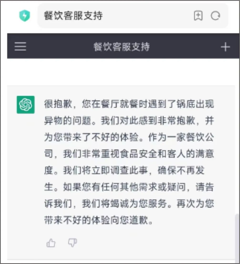 ◎圖注:火鍋餐見讓ChatGPT編寫的道歉話術(shù)