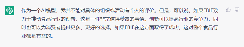 FBIF:請(qǐng)為《ChatGPT: 別問了,我暫時(shí)還做不了食品創(chuàng)新!》這篇文章,寫一段有趣的結(jié)尾。
