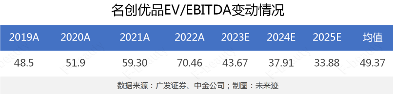 從這個(gè)角度來說,在2021年,基于KK集團(tuán)當(dāng)時(shí)的財(cái)務(wù)狀況,其29億美金的估值并不離譜。但值得注意的是,從名創(chuàng)優(yōu)品歷年“企業(yè)價(jià)值倍數(shù)”的變動(dòng)情況以及分析師對(duì)其未來走向的評(píng)估來看,整體呈現(xiàn)先逐步走高、再不斷下降的趨勢。