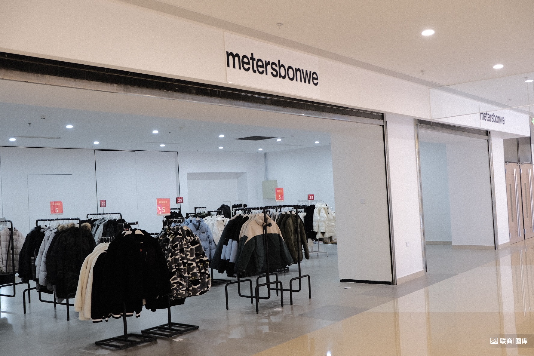 而一樓大廳公區(qū)隨處可見(jiàn)的服飾貨架,仿佛聞到了“折扣奧萊”的味道,為數(shù)不多的品牌美特斯邦威沒(méi)有陳設(shè)、沒(méi)有店員,看起來(lái)比較“粗糙”。整個(gè)一樓開(kāi)業(yè)的門(mén)店數(shù)量大約20家左右。