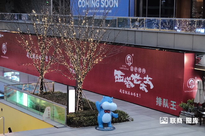 整體看,商場(chǎng)面積不大,業(yè)態(tài)以餐飲為主,客流圍繞海底撈、星巴克、麥當(dāng)勞幾個(gè)流量大店。下午1點(diǎn)的海底撈依然高朋滿座。