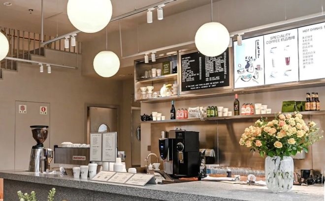 首店除了服飾業(yè)態(tài),還包括家居、餐飲業(yè)態(tài)。其中,同名咖啡館是本次開業(yè)中的諸多亮點(diǎn)之一,咖啡館在裝修陳設(shè)上沿用了北歐極簡(jiǎn)美學(xué)風(fēng),木咖色桌椅和陳列柜、奶白色圓球吊燈、鮮花等元素更加渲染氛圍。