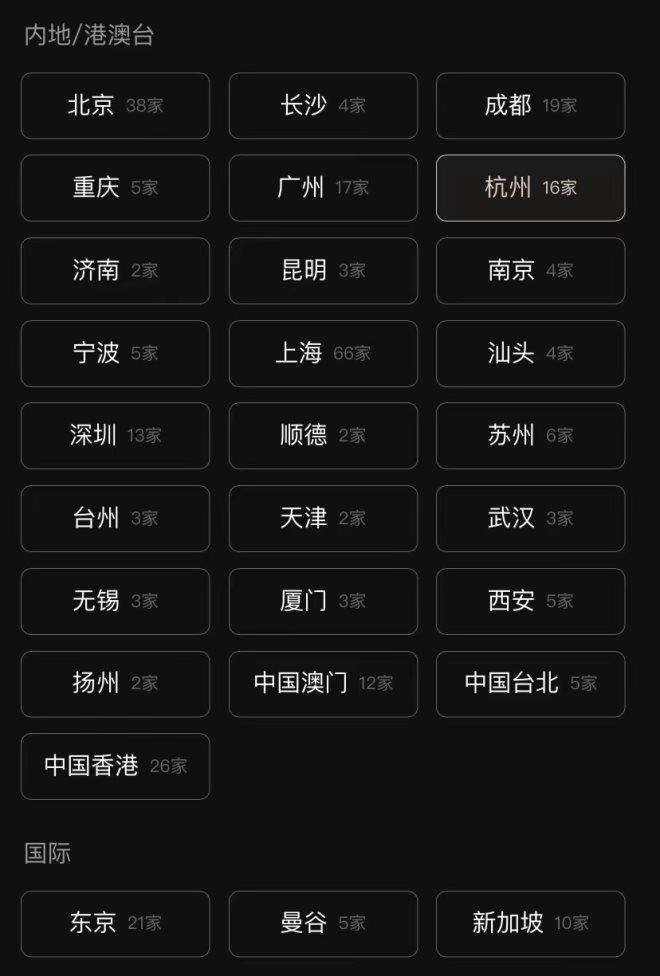 目前,“2023黑珍珠”已經(jīng)覆蓋國(guó)內(nèi)25城和海外3城(東京、新加坡和曼谷)。具體來(lái)看,上海作為精致餐飲消費(fèi)的風(fēng)向標(biāo),本次上榜餐廳數(shù)多達(dá)66家,新上榜餐廳共12家,是中國(guó)內(nèi)地新上榜餐廳最多的城市。排在第二位的是北京,上榜餐廳數(shù)為38家,其中新上榜餐廳5家,均為一鉆餐廳;接下來(lái)是中國(guó)香港,共有26家餐廳上榜,其中4家為新上榜餐廳,均為一鉆餐廳。