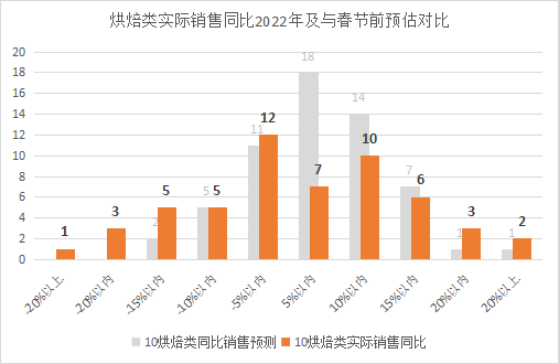 18、烘焙類(面包、中西糕點)的部分企業(yè)表現(xiàn)一般,銷售同比2022年下降20%以上的有1家,下降15-20%的有3家,下降10-15%的有5家,下降5-10%的有5家,下降5%以內(nèi)的有12家,有28家同比上漲。
