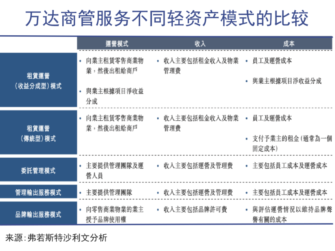 萬(wàn)達(dá)商管正式開(kāi)啟輕資產(chǎn)轉(zhuǎn)型,專(zhuān)注運(yùn)營(yíng)管理,強(qiáng)調(diào)服務(wù)屬性;2021年開(kāi)始萬(wàn)達(dá)商管將不再投資持有萬(wàn)達(dá)廣場(chǎng)物業(yè),只進(jìn)行品牌輸出,負(fù)責(zé)設(shè)計(jì)、建設(shè)與運(yùn)營(yíng),賺取收益。