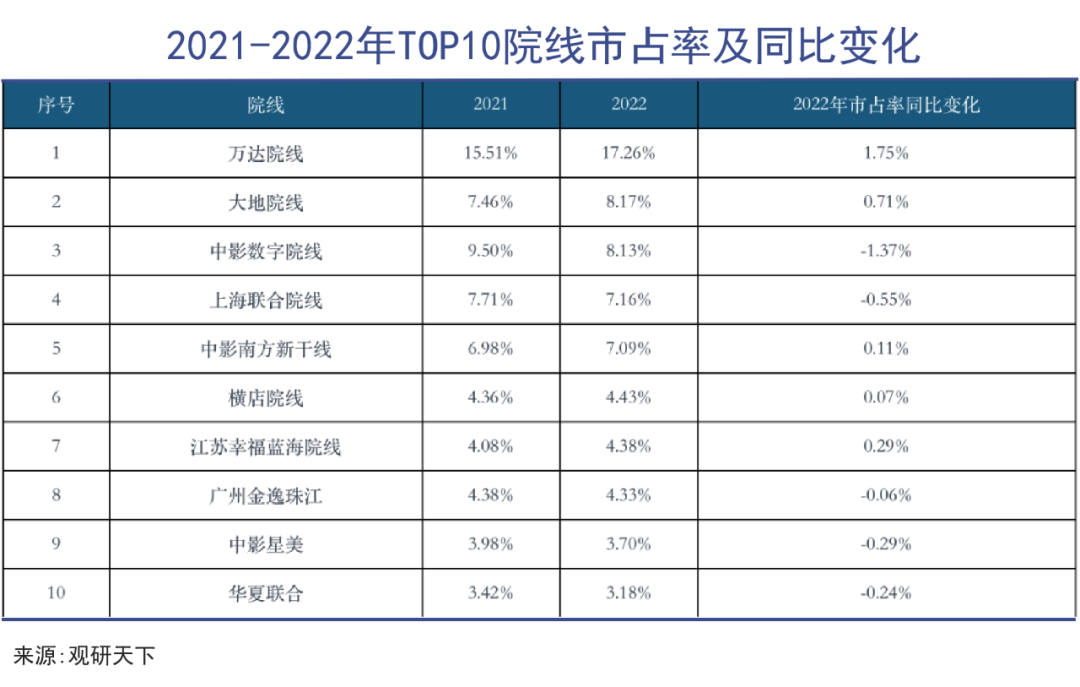 2019年,萬(wàn)達(dá)院線(xiàn)對(duì)中國(guó)電影票房的市占率為12.76%。2022年,這一數(shù)字反而上升到17.26%,不僅強(qiáng)者恒強(qiáng),其對(duì)中國(guó)電影下游渠道的話(huà)語(yǔ)權(quán)也進(jìn)一步增強(qiáng)。