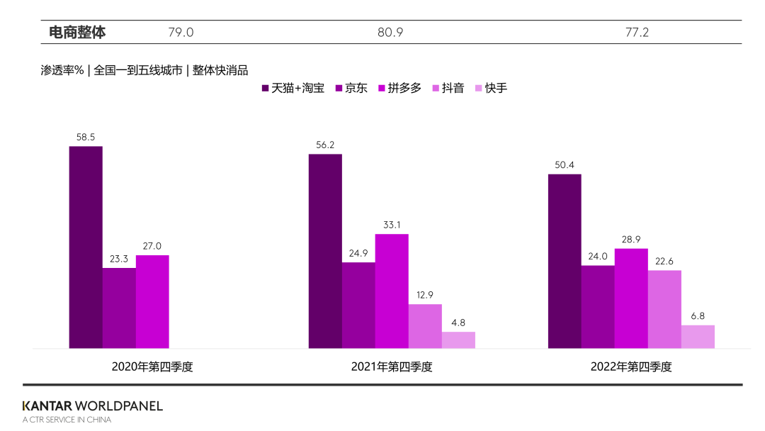 凱度消費者指數(shù)的最新數(shù)據(jù)顯示了2022年整體電商渠道增速減緩,但消費者的購買頻次保持穩(wěn)定,而興趣電商在這一年飛速增長。