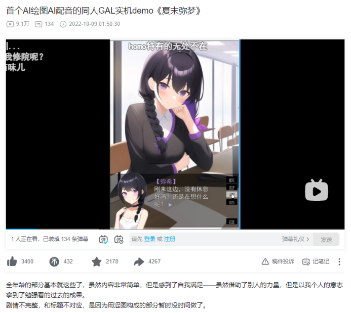 2022年10月,Up主秋之雪華在BiliBili上傳了由人工智能生成的動(dòng)畫(huà)《夏末彌夢(mèng)》DEMO。