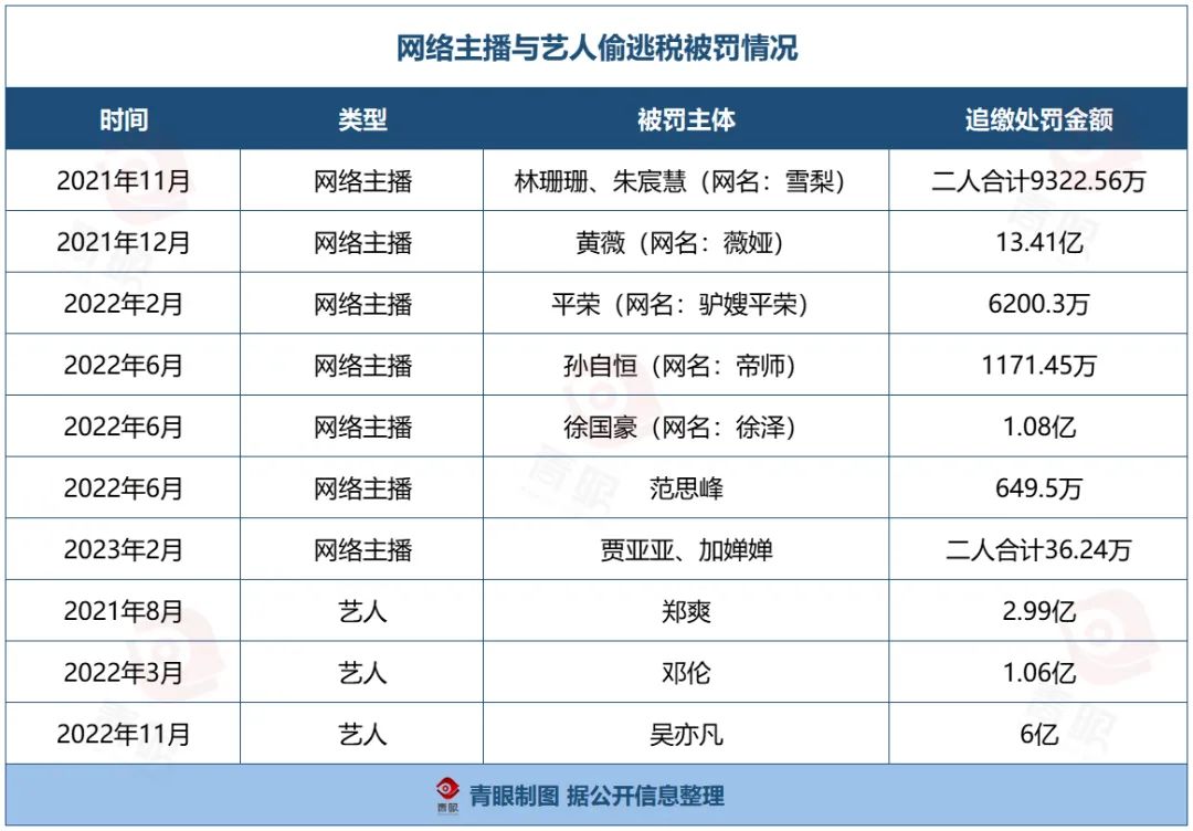 再加之這兩年被曝光的藝人鄭爽、鄧倫、吳亦凡,主播和藝人這兩類公眾人物共計有12人偷逃稅被追繳處罰逾26億元,金額之大令人瞠目。