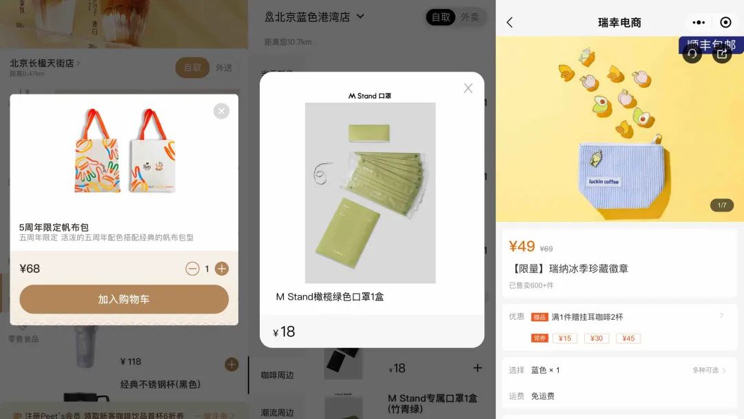 圖源:Peet's coffee、M Stand、瑞幸咖啡小程序