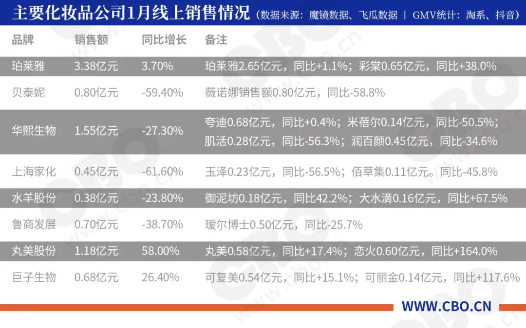 數(shù)據(jù)顯示,彩棠1月線上銷售額超6500萬元,同比增長38%,僅次于主品牌珀萊雅;戀火線上銷售額達(dá)到6000萬元,同比增長164%,甚至超過了丸美旗下同名護(hù)膚品牌,撐起了丸美股份線上的“半邊天”。