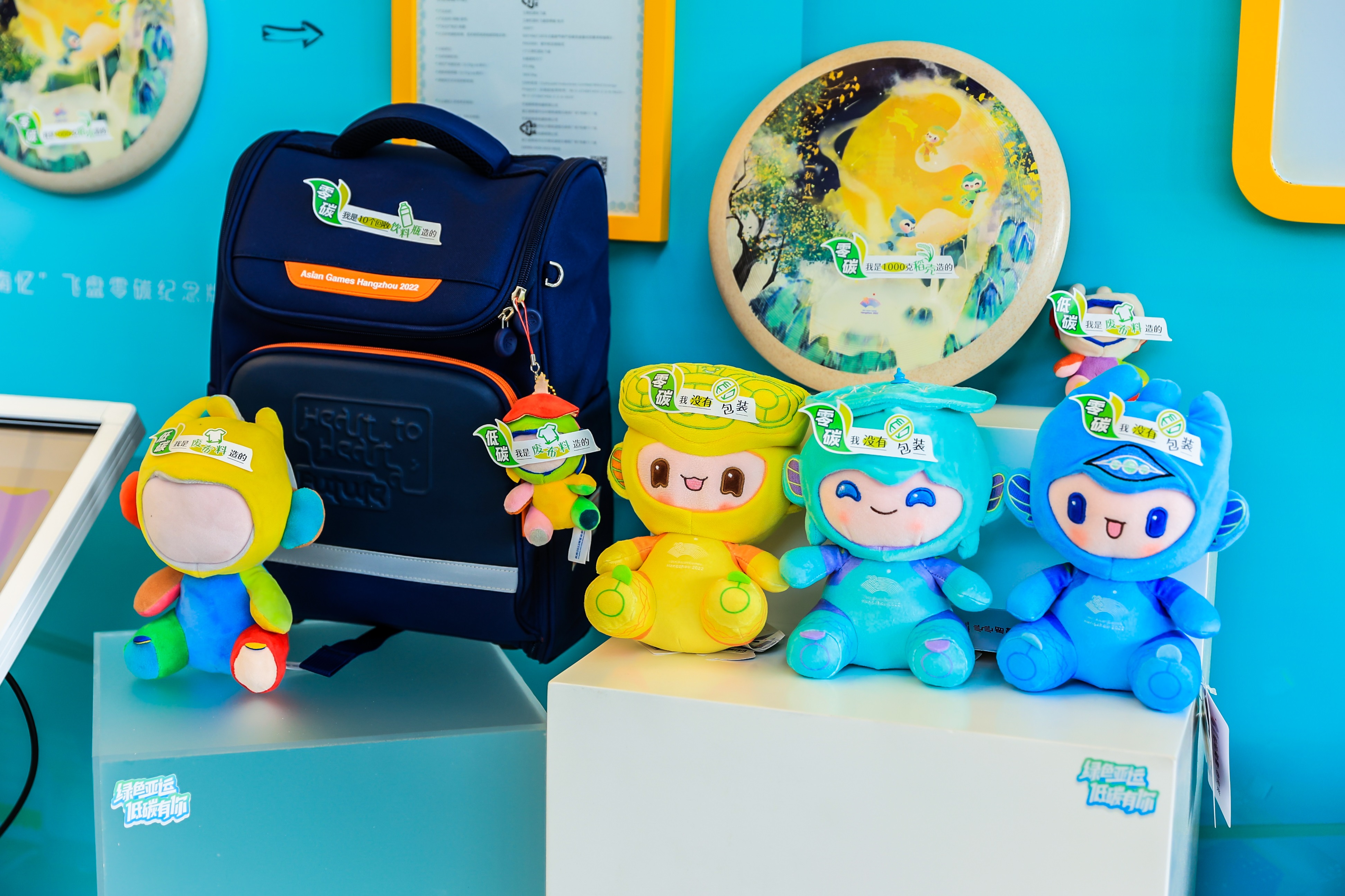 廢布料制成的吉祥物公仔,10個回收飲料瓶做成的雙肩包,1000克稻殼造做成的零碳飛盤……這些亞運低碳系列特許商品正是綠色亞運的一個縮影。