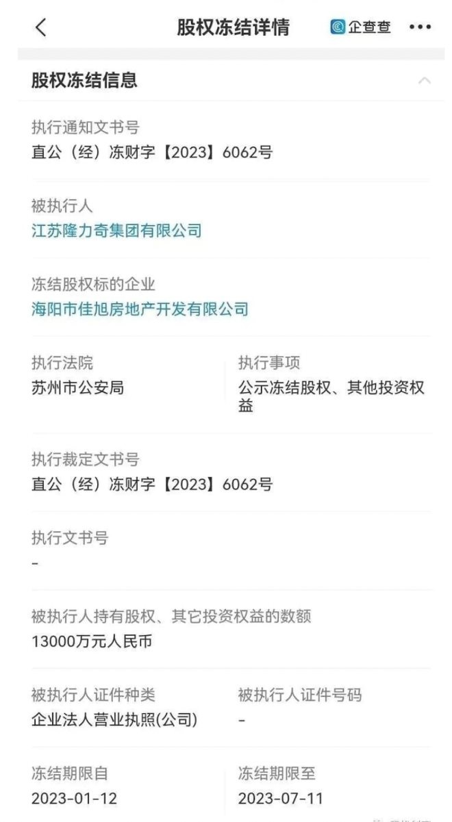 但值得關(guān)注的是,在徐之偉被取保候?qū)徬⑵毓獾耐惶,蘇州警方就凍結(jié)了江蘇隆力奇集團(tuán)有限公司所持的海陽市佳旭房地產(chǎn)開發(fā)有限公司、濰坊農(nóng)村商業(yè)銀行股份有限公司股權(quán),共計(jì)1.5億人民幣。