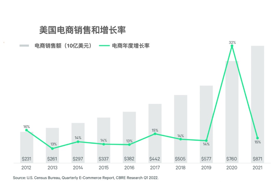 圖7 美國電商銷售和增長率