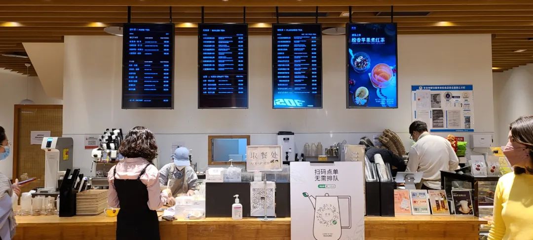 內參君蹲點了煮葉國貿店,周二下午的3-4點,300平米的大店中座無虛席,甚至出現(xiàn)了等位的情況。從下單到取餐,整個過程并沒有想象中的迅速,幾平米的前臺擠著6個點單、出品員工,顯得有些忙亂,甚至需要顧客去自助服務。