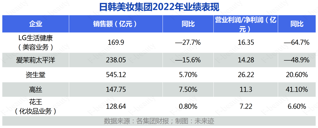 另一韓國美妝巨頭愛茉莉太平洋集團(tuán)同樣面臨營收和利潤的雙雙下滑。財報顯示,集團(tuán)2022年銷售額為238.05億元,同比下滑15.6%,營業(yè)利潤為14.28億元,同比下滑達(dá)48.9%。