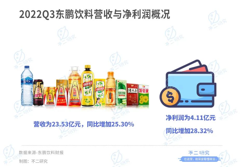 「不二研究」據(jù)東鵬飲料最新財報發(fā)現(xiàn):去年三季度,東鵬飲料的營收為23.53億元,同比增加25.30%,凈利潤為4.11億元,同比增加28.32%。