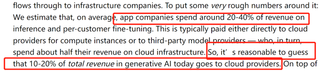 目前生成式AI市場分為三層:應用層、模型層與基礎設施層。a16z(硅谷知名創(chuàng)投企業(yè))以應用層公司向下推算,預測20%-40%的利潤會流向提供基礎設施企業(yè),其中10%-20%會流向云計算服務商。