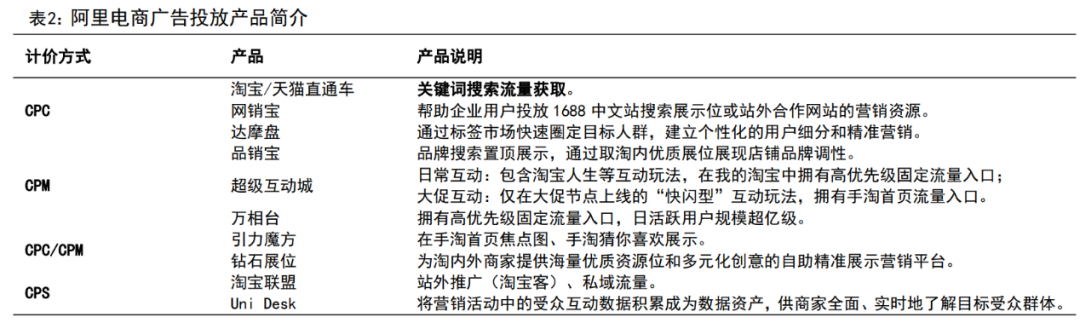 圖:阿里電商廣告投放產(chǎn)品介紹,來源:國信證券經(jīng)濟研究所