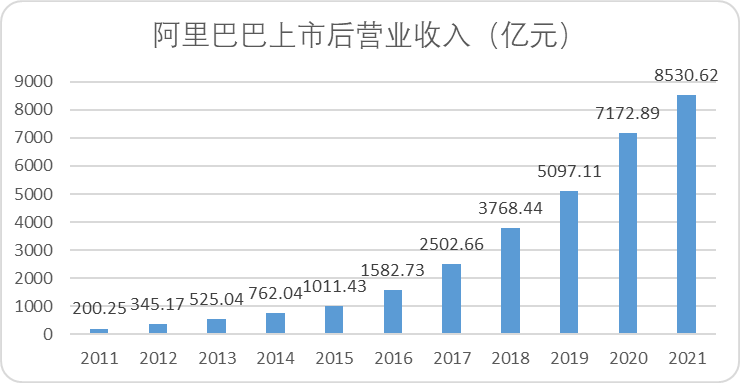 圖:阿里巴巴上市后營業(yè)收入,來源:Choice金融客戶端