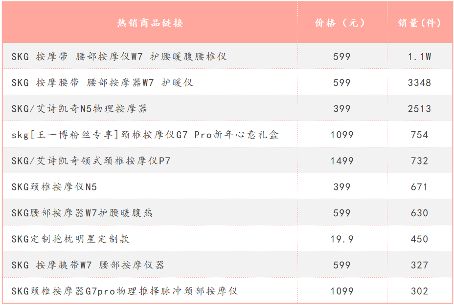 從這一角度我們就不能理解,為何此前在SKG的抖音自播直播間內(nèi),主播會反復強調(diào)買買按摩儀送“王一博抱枕”送完截止這樣的話術。其本質上還是在利用明星效應,從而讓消費者暫時不和其他品牌商品進行對比,進而增加消費者的搶購欲。但這也決定了SKG接下來很長一段時間SKG要么選擇和王一博繼續(xù)合作,要么找其他頂流代言。但不管何種選擇,由明星代言所產(chǎn)生的高代言費用讓SKG也難以輕松。