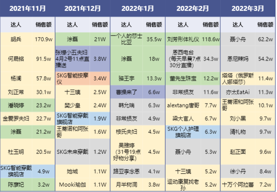 而抖音平臺的問題則更加復雜,目前SKG在抖音的營銷方式主要包括,達人視頻帶貨、直播間帶貨、品牌自播等方式。但需要指出的是,基于抖音電商的特性,其更適合低客單價商品轉化。但以2022年3月份SKG在抖音上的熱銷產(chǎn)品來看,其較高產(chǎn)品的客單價似乎和抖音平臺并不是很契合,產(chǎn)品整體銷量并不是很高。