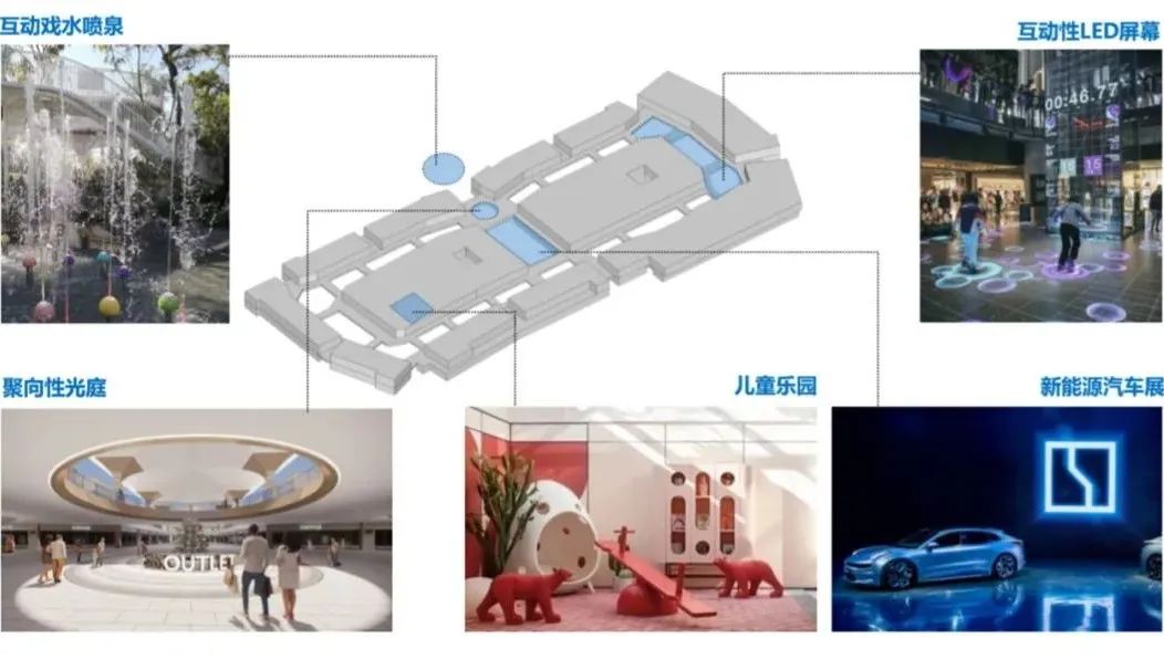 此外,成都杉杉奧萊還擁有場(chǎng)內(nèi)硬件和商業(yè)內(nèi)容情景化的創(chuàng)新打造——互動(dòng)噴泉、互動(dòng)性L(fǎng)ED屏幕、聚向性光庭、兒童樂(lè)園和新能源車(chē)展等多種場(chǎng)景,貫徹落實(shí)“品質(zhì)奧萊”的觀念,進(jìn)而提升視覺(jué)調(diào)性與辨識(shí)度,或?qū)⒊蔀樯虡I(yè)引流利器。