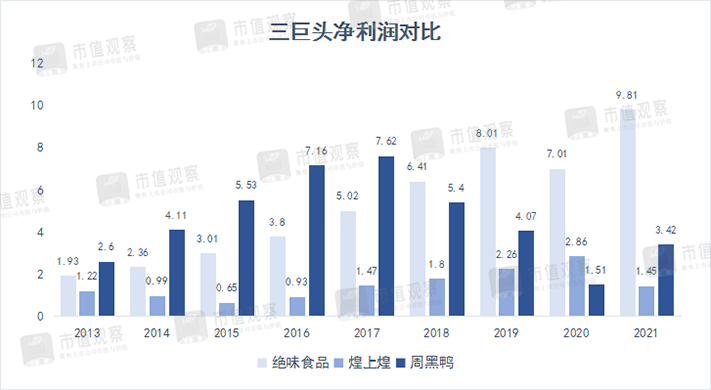 翻開歷史業(yè)績卷軸,周黑鴨和煌上煌創(chuàng)造了上市以來凈利潤的歷史新低。絕味食品也退回到了2014年水平。