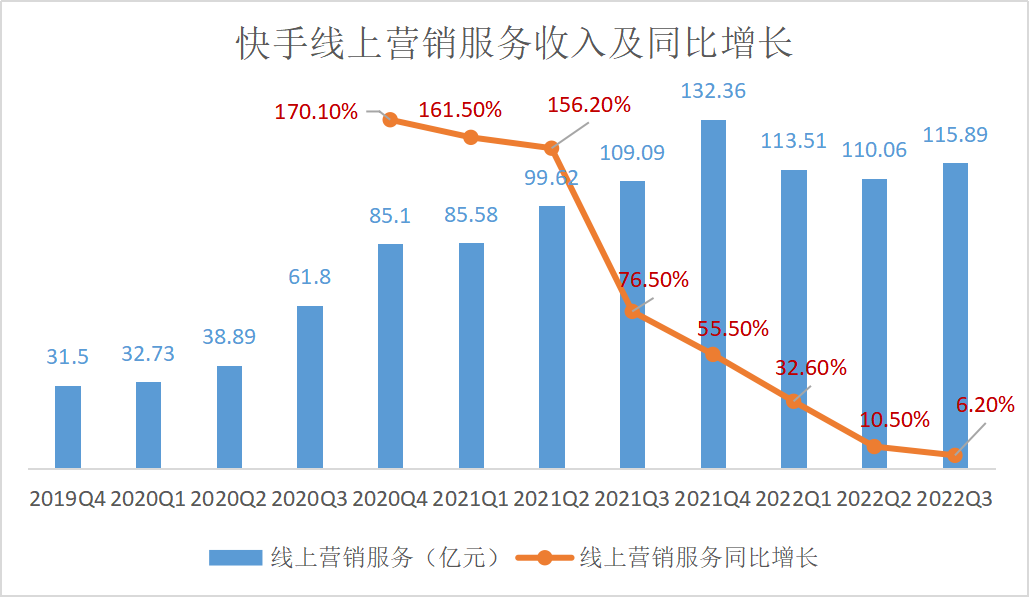 快手線上營(yíng)銷服務(wù)收入及同比增長(zhǎng)