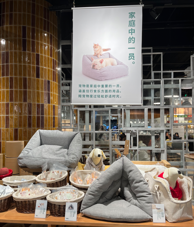 日用品區(qū)域則與FARM部分相連,協(xié)同塑造“市集感”。此外,還專(zhuān)門(mén)設(shè)立了寵物用品區(qū),給“小寶貝”一個(gè)專(zhuān)屬小天地。