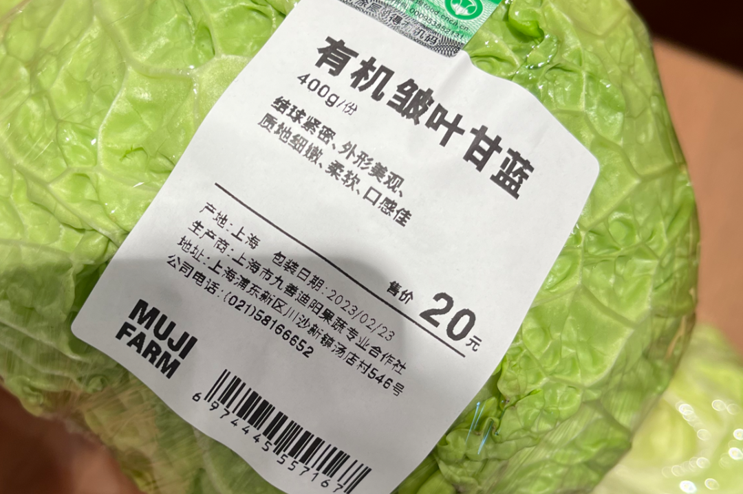 從食品標(biāo)簽上可以看到,生鮮蔬菜上的生產(chǎn)商是位于上海川沙新鎮(zhèn)的果蔬專(zhuān)業(yè)合作社,MUJI FARM則是作為產(chǎn)品的銷(xiāo)售品牌。