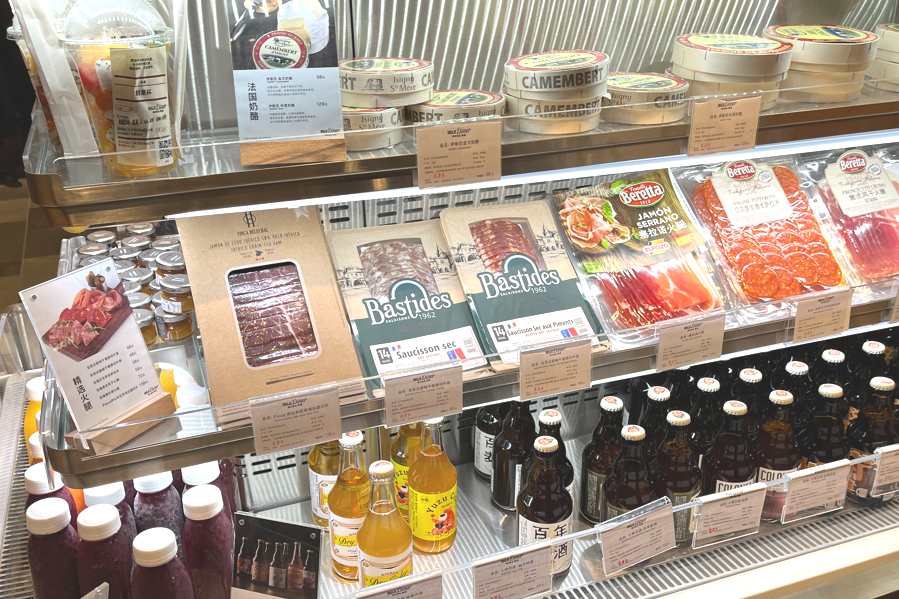 除了新鮮時(shí)蔬直采直供外,也有半加工的即食品售賣(mài),如MUJI便當(dāng)、鮮榨果蔬汁等。這些即時(shí)餐品均為當(dāng)日制作。當(dāng)天我到店時(shí)間不到中午一點(diǎn),所售便當(dāng)上標(biāo)注的生產(chǎn)時(shí)間是上午9時(shí)50分。此外,還有半個(gè)冰鮮柜售賣(mài)兩到三個(gè)品類(lèi)的黃油、香腸等食材。