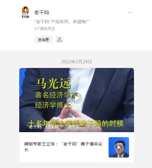 而公眾號這邊,老干媽也僅僅在去年三月份從圖文到視頻試水了幾次,就停止了內(nèi)容更新。