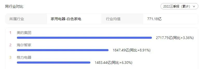 如今,四年過去,美的的營收幾乎是格力的2倍,和海爾的營收差距從1.5%到22%。