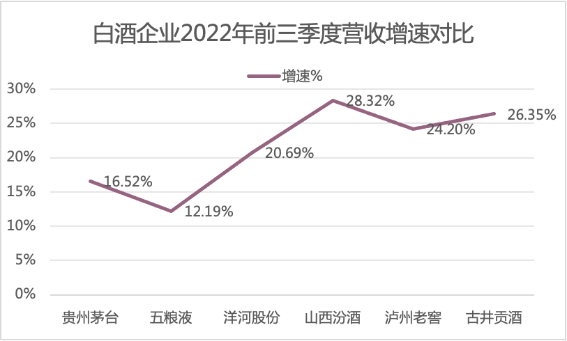 2022年前三季度,貴州茅臺(tái)實(shí)現(xiàn)營(yíng)收897.9億元,同比增長(zhǎng)16.51%、洋河股份、山西汾酒、瀘州老窖、古井貢酒則是達(dá)到了超20%的營(yíng)收增速;顯然,五糧液的營(yíng)收增速在其中墊底。