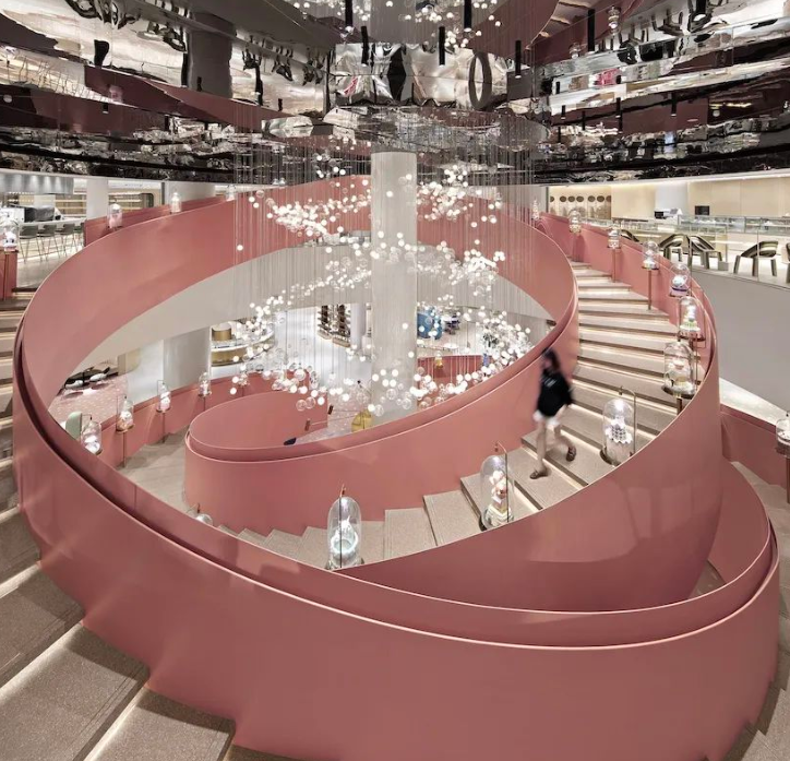 其次在造價(jià)上,總面積6000平米的蛋糕主題店,占據(jù)了一整棟商業(yè)樓的上下兩層,以莫比烏斯環(huán)為原型打造的樓梯更是網(wǎng)紅們來(lái)深圳的常駐打卡地。