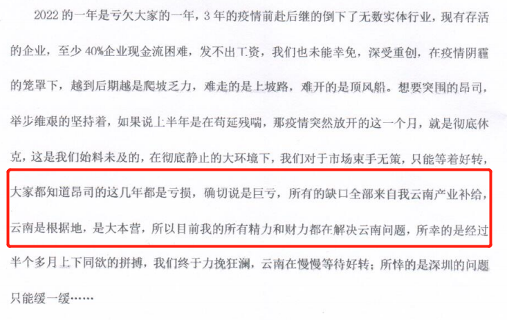 一份昂司內(nèi)部公開(kāi)信顯示,昂司這幾年的經(jīng)營(yíng)狀態(tài)都是虧損的,確切說(shuō)是巨虧,實(shí)屬虧本賺吆喝,而所有的缺口都是由創(chuàng)始人羅振豪自己的云南產(chǎn)業(yè)作為補(bǔ)給。
