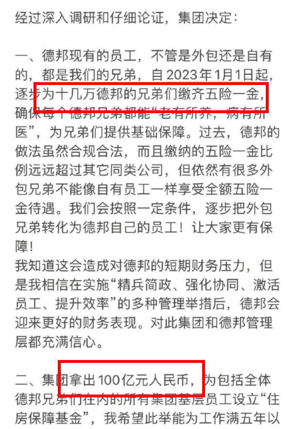 具體措施是為十幾萬德邦兄弟們繳齊五險一金、為基層員工設(shè)立100億住房保障基金、個人捐款1億人民幣擴充員工子女救助基金、京東高管現(xiàn)金薪酬降低10%-20%等等。