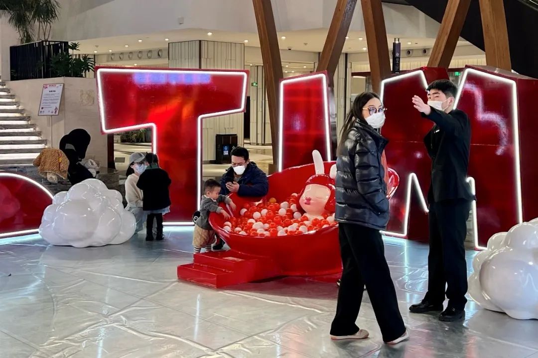 以2023年1月14日至2月28日的“奈美兔潮流藝術(shù)展”為例,除了藝術(shù)裝置,現(xiàn)場還設(shè)立”TU”鴉涂鴉繪制明信片”、“TU擊”射擊互動游戲、扭蛋機(jī)和售賣周邊產(chǎn)品的小攤位,增添了豐富性和趣味性。