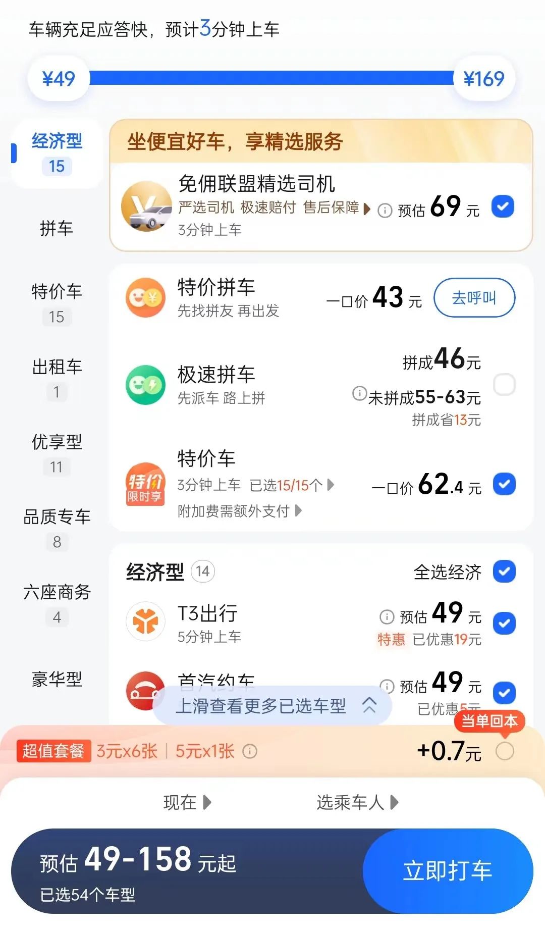 簡(jiǎn)單來(lái)說(shuō),就是把更多的網(wǎng)約車(chē)平臺(tái)聚集在一個(gè)平臺(tái)上,用戶(hù)可以一鍵叫車(chē)、全網(wǎng)比價(jià),是一種更便捷、更高效的供需匹配方式。