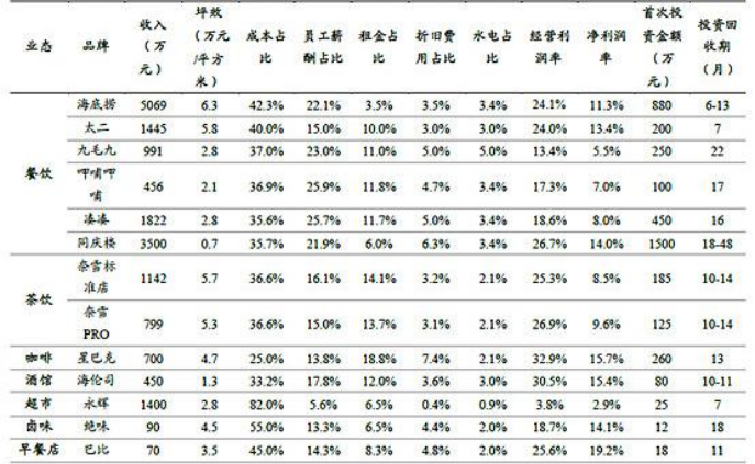 餐飲行業(yè)主要賽道投資回報情況對比 圖源:國泰君安研報