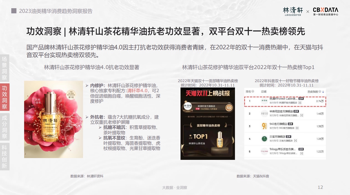 功效洞察 | 林清軒山茶花精華油抗老功效顯著,雙平臺(tái)雙十一熱賣榜領(lǐng)先
