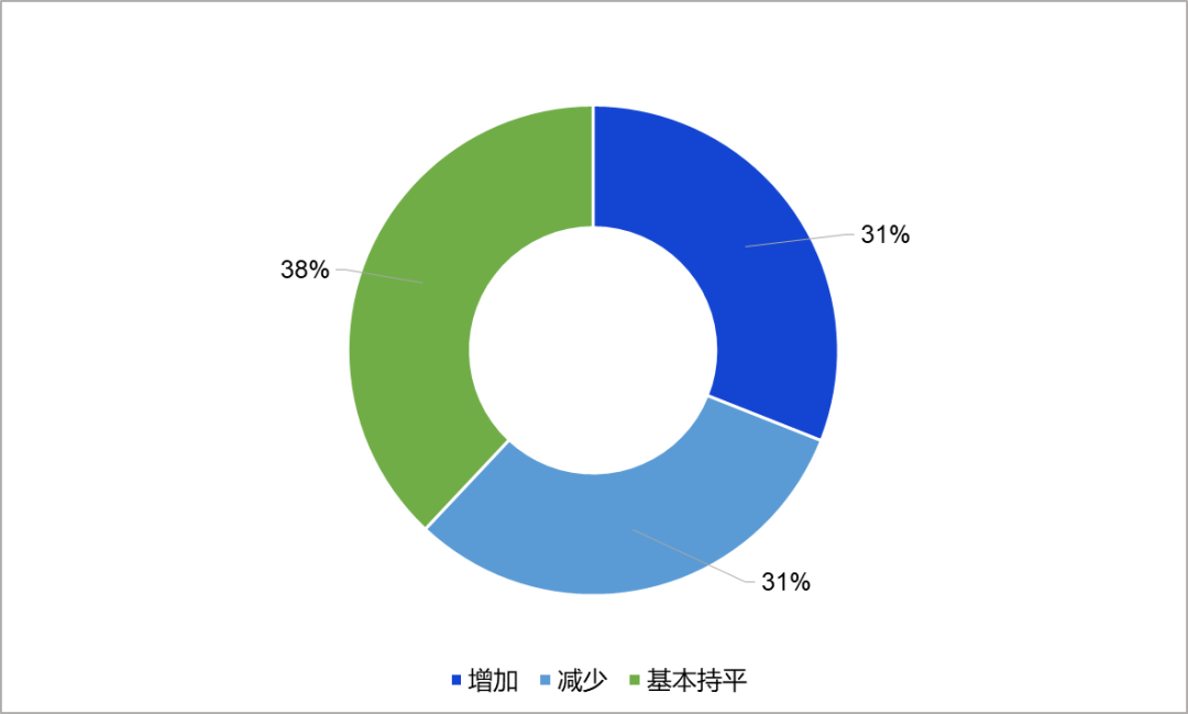 受訪企業(yè)中,31%的企業(yè)2022年?duì)I收同比去年實(shí)現(xiàn)增長(zhǎng),31%的企業(yè)有所減少,38%的企業(yè)與去年基本持平。
